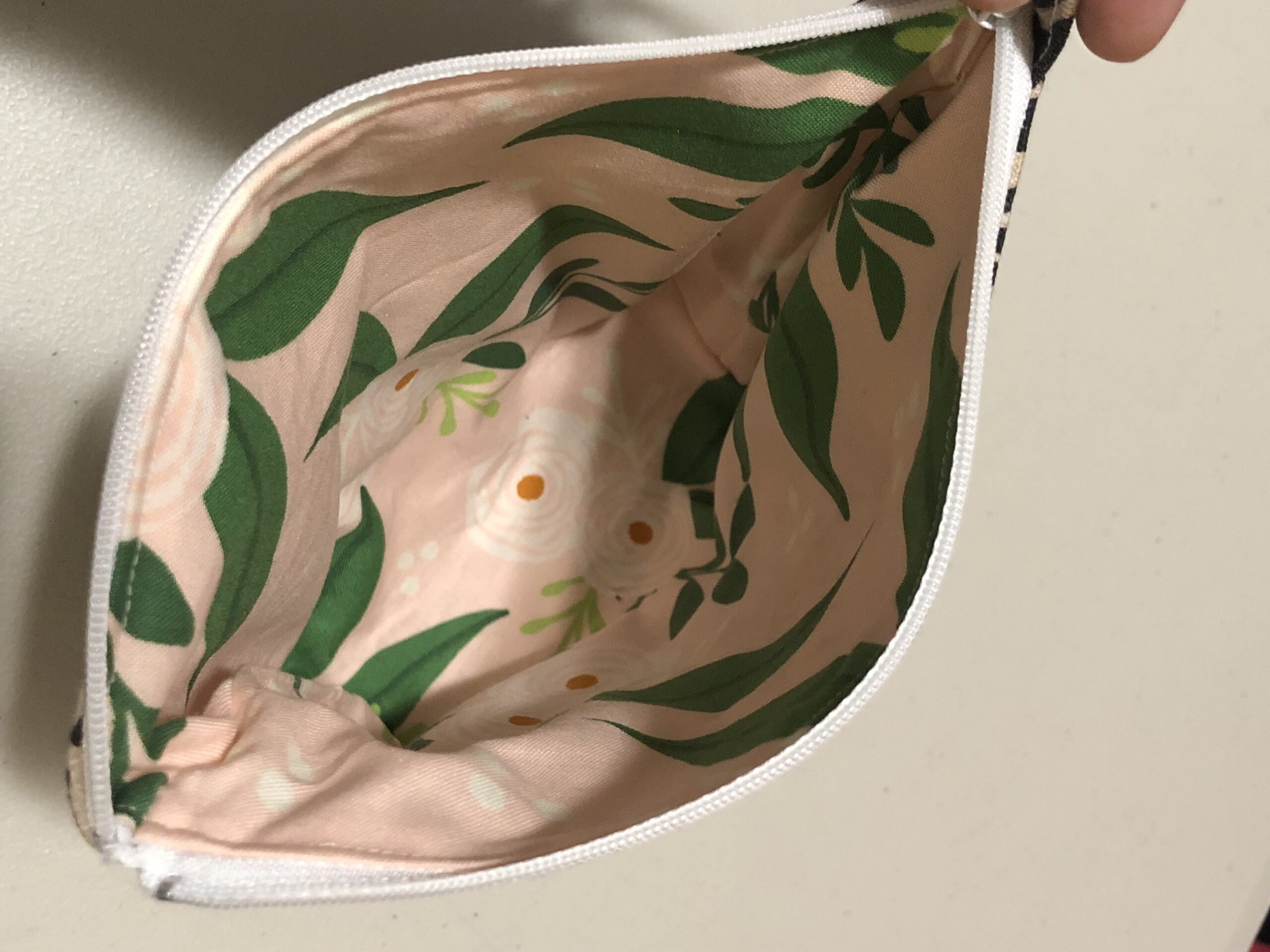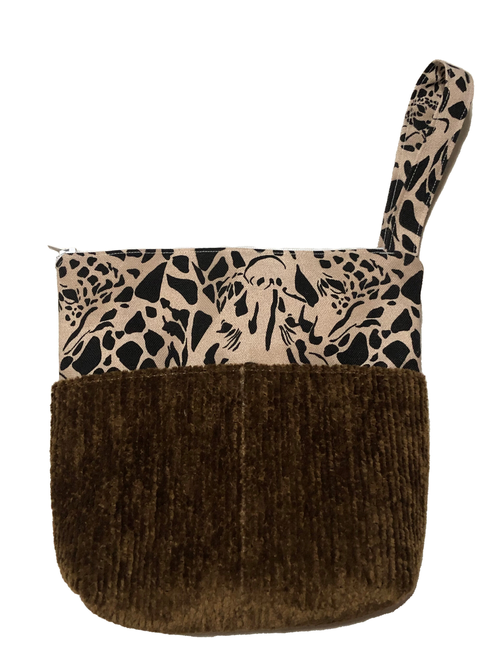 This unique clutch is made from upcycled upholstery samples with a main zipper pouch with pink floral interior and 4 exterior pockets.